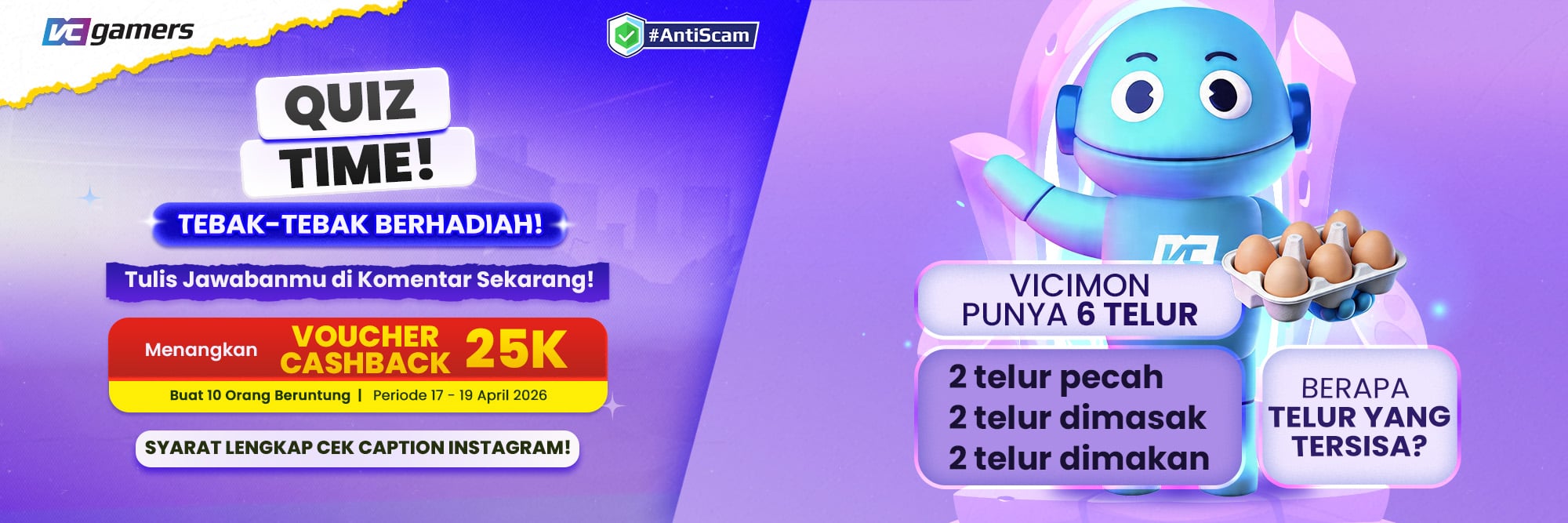 Follow sosial media VCGamers juga bisa dapat kode voucher loh!