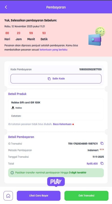 – Pastikan kamu menyelesaikan pembayaran sebelum batas waktu pembayaran berakhir