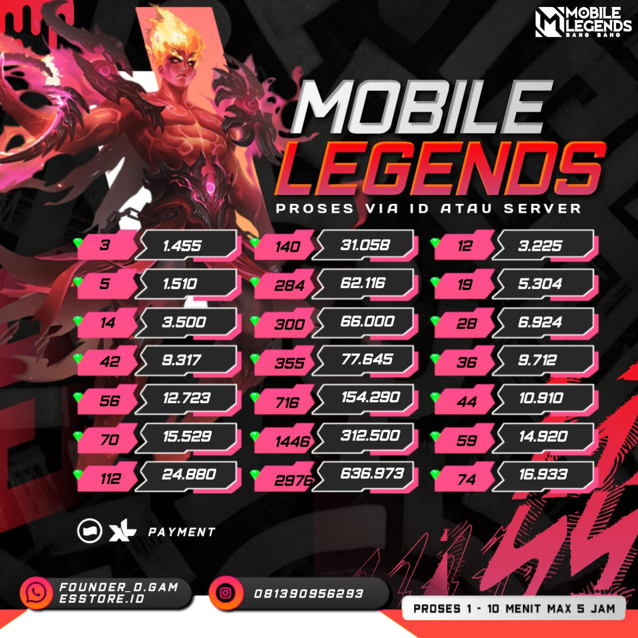 - Harap Pastikan ID dan Server sesuai dengan yang ingin diisi, jika terjadi kesalahan maka itu diluar tanggung jawab kami.