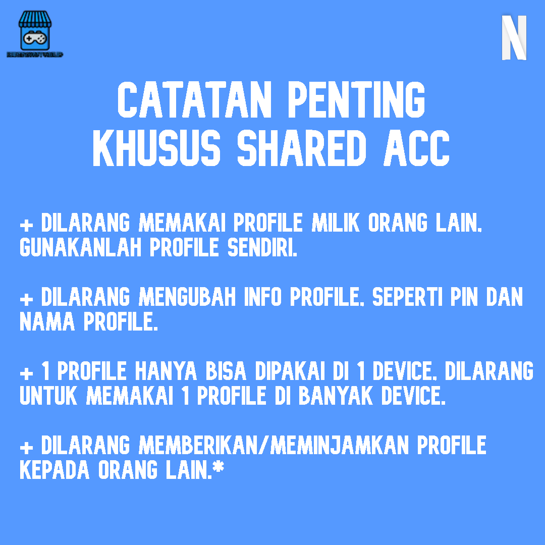 + Dilarang mengubah informasi akun, seperti email, password dan metode pembayaran (Tidak ada garansi dan akun akan di-revoke)