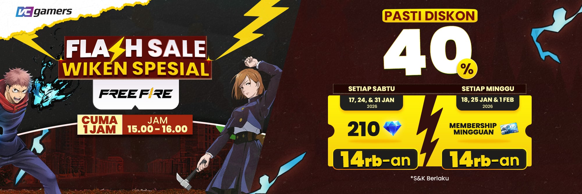 Follow sosial media VCGamers juga bisa dapat kode voucher loh!